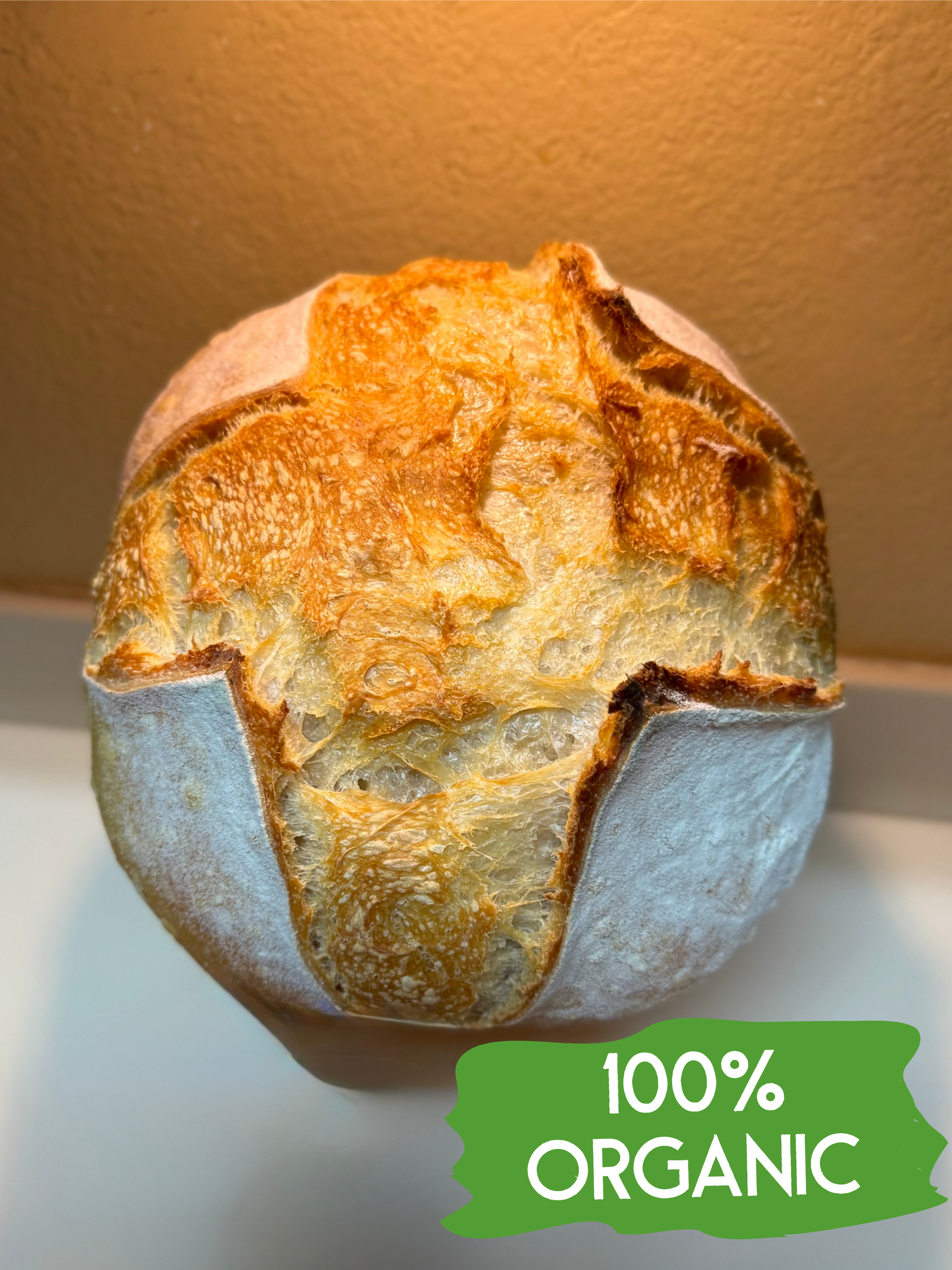 Crafted with care over a slow, three-day fermentation process, our organic sourdough bread is a true labor of love. The result? A naturally leavened loaf that’s fluffy, soft, and deeply flavorful with every bite. Each loaf is made from 100% organic ingredients—no shortcuts, no additives, just real, wholesome goodness. Whether toasted or fresh from the slice, this sourdough is the perfect balance of comfort and complexity.